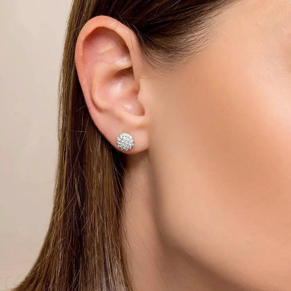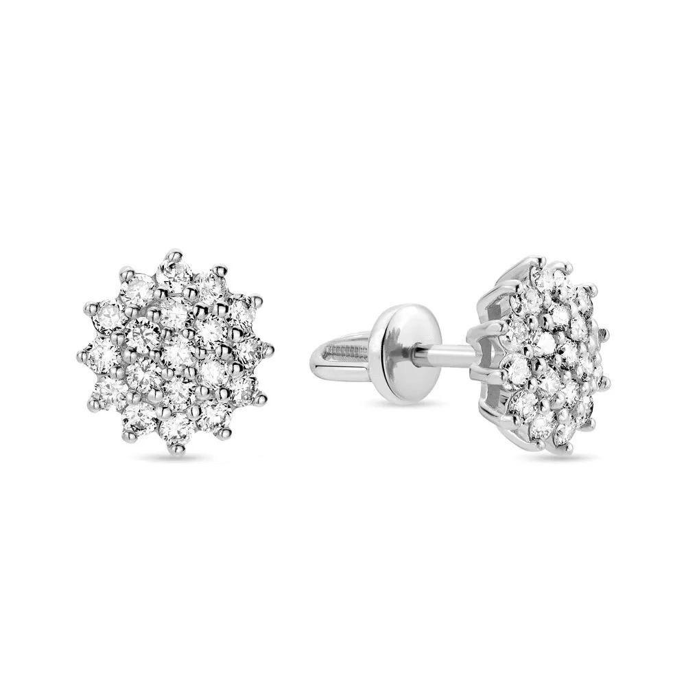 Stud Flower Earrings in 14K/585 White Gold with Diamonds