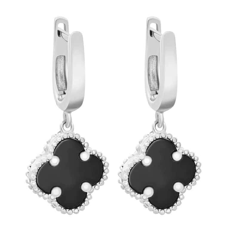925 Sterling Silver Clover Drop Earrings with Onyx