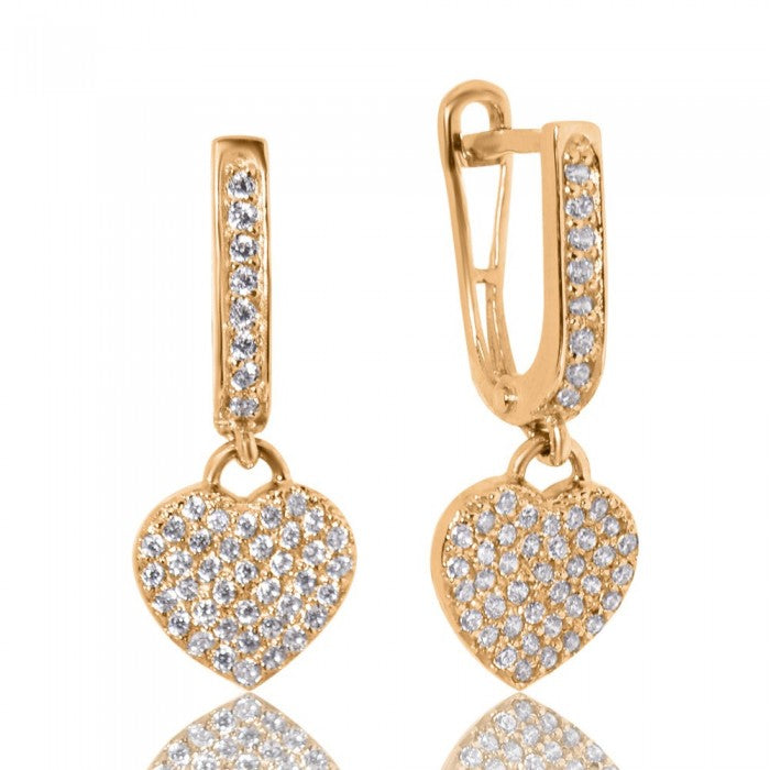 Drop Hearts Earrings in 14K/585 Rose Gold with Cubic Zirconia