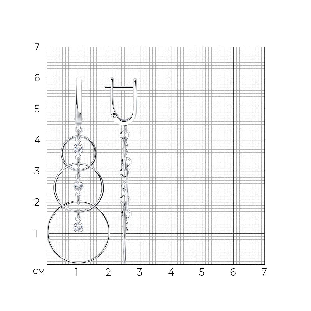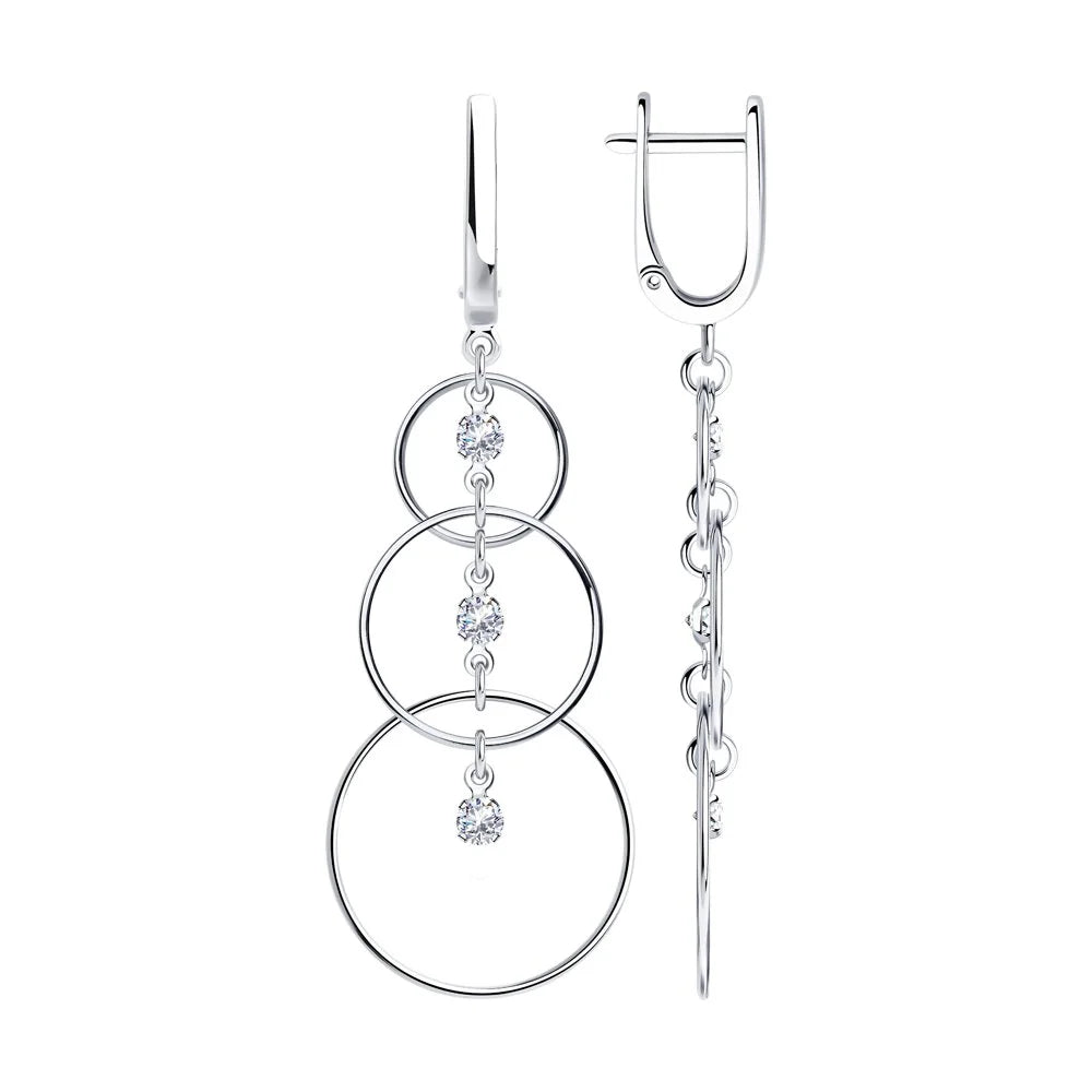 Gorgeous drop earrings with circles and cubic zirconia.