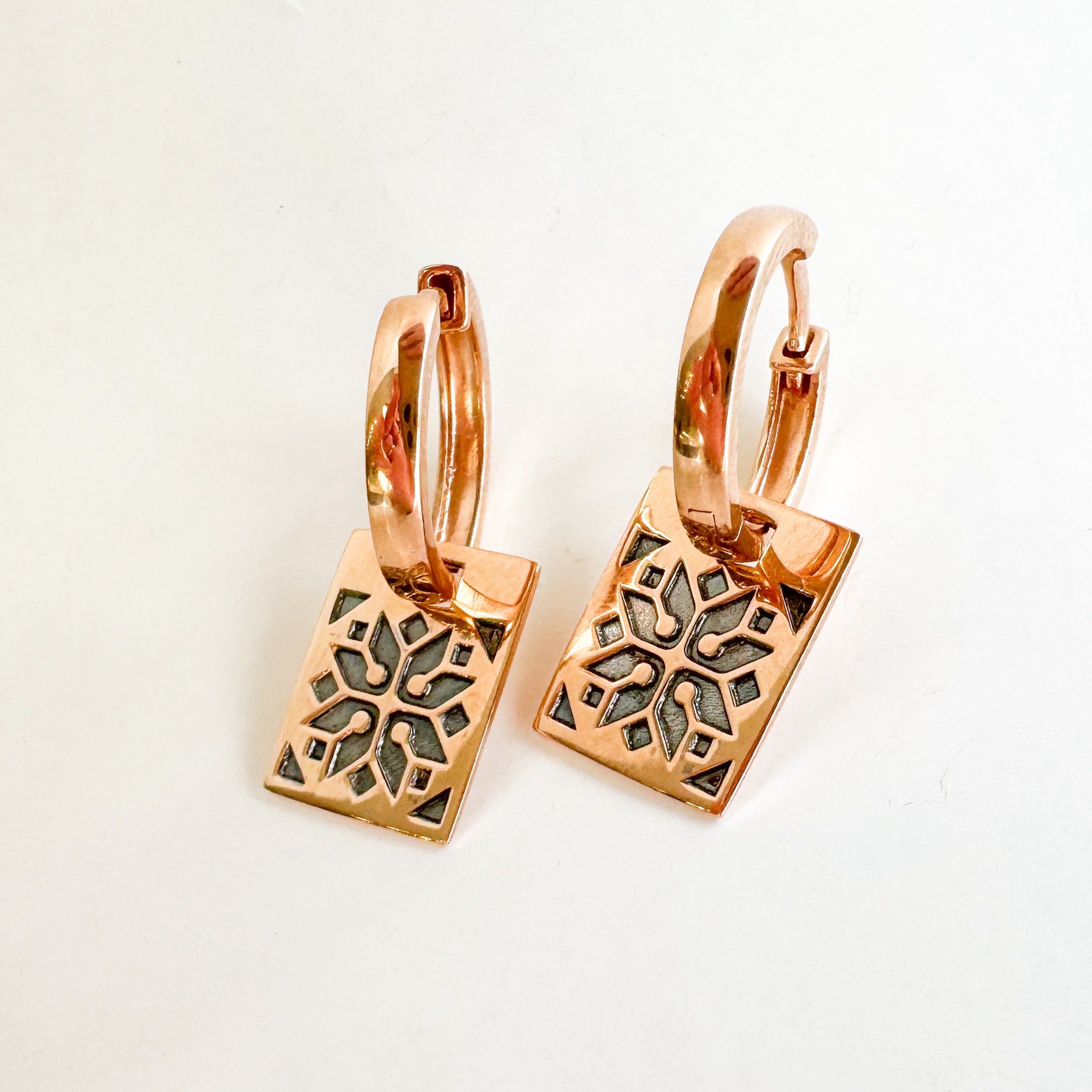 Vyshyvanka Earrings in 14K/585 Rose Gold with Enamel