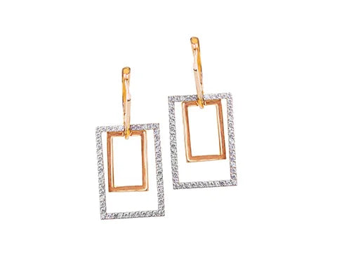 14K/585 Rose and White Gold Squares Lever Back Earrings