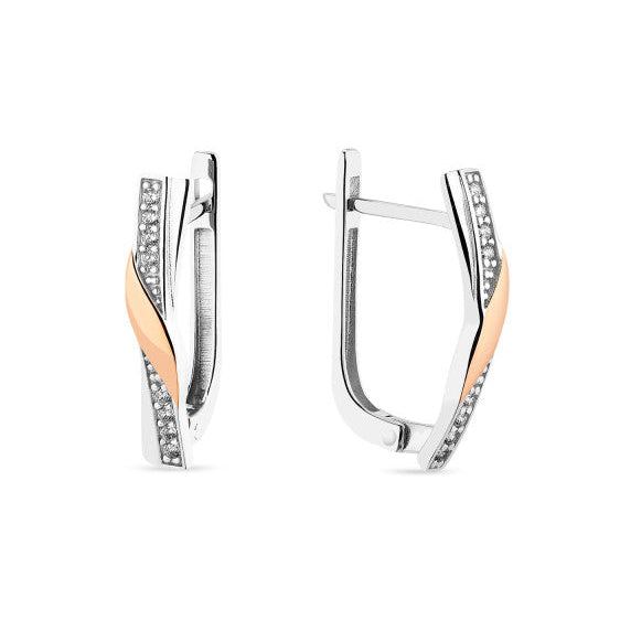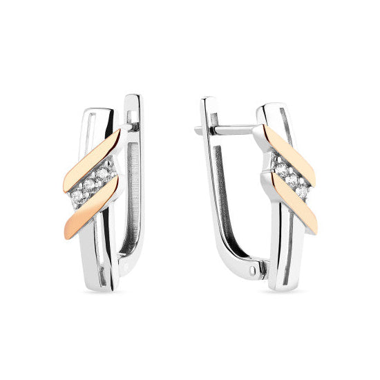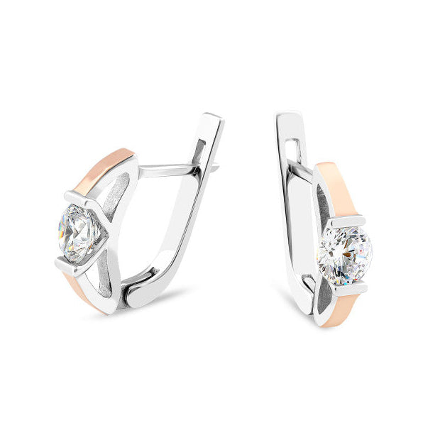 925 Sterling Silver Lever Back Earrings with Cubic Zirconia and 10K/375 Rose Gold Overlays