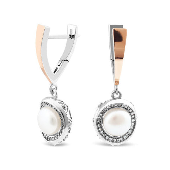 925 Sterling Silver Drop Earrings with Pearls, Cubic Zirconia and 10K/375 Rose Gold Overlays