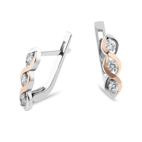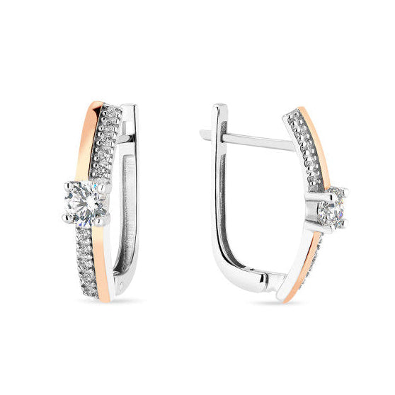 925 Sterling Silver Lever Back Earrings with Cubic Zirconia and Rose Gold Overlays