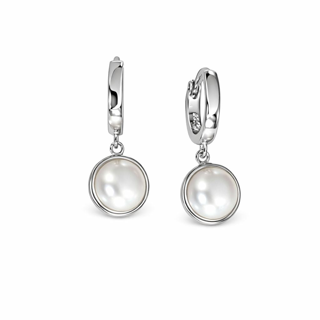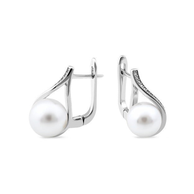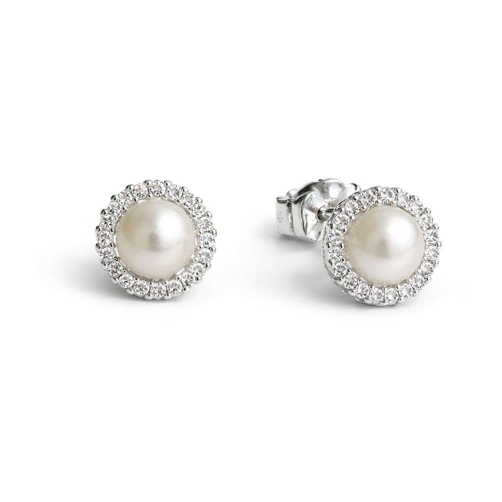 925 Sterling Silver Stud Earrings with Pearls and Cubic Zirconia