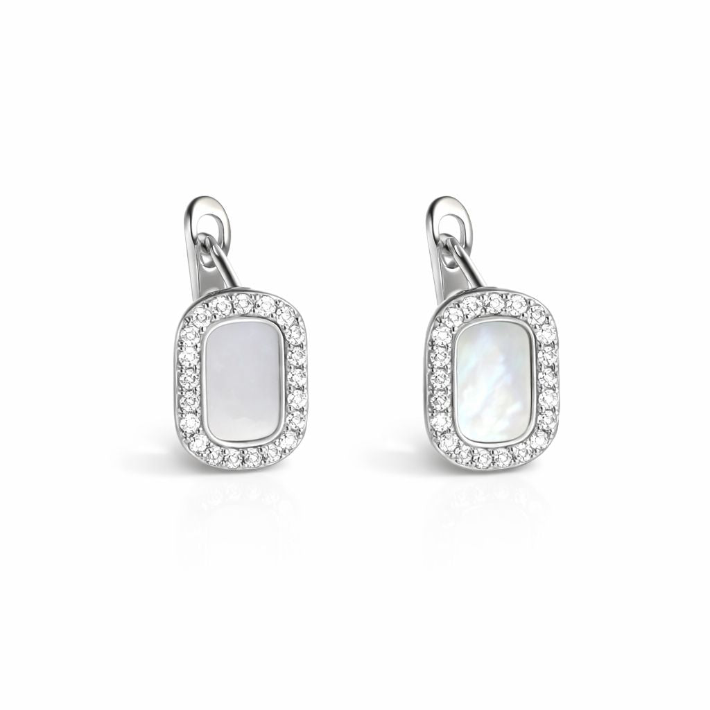925 Sterling Silver Lever Back Earrings with Mother of Pearl and Cubic Zirconia