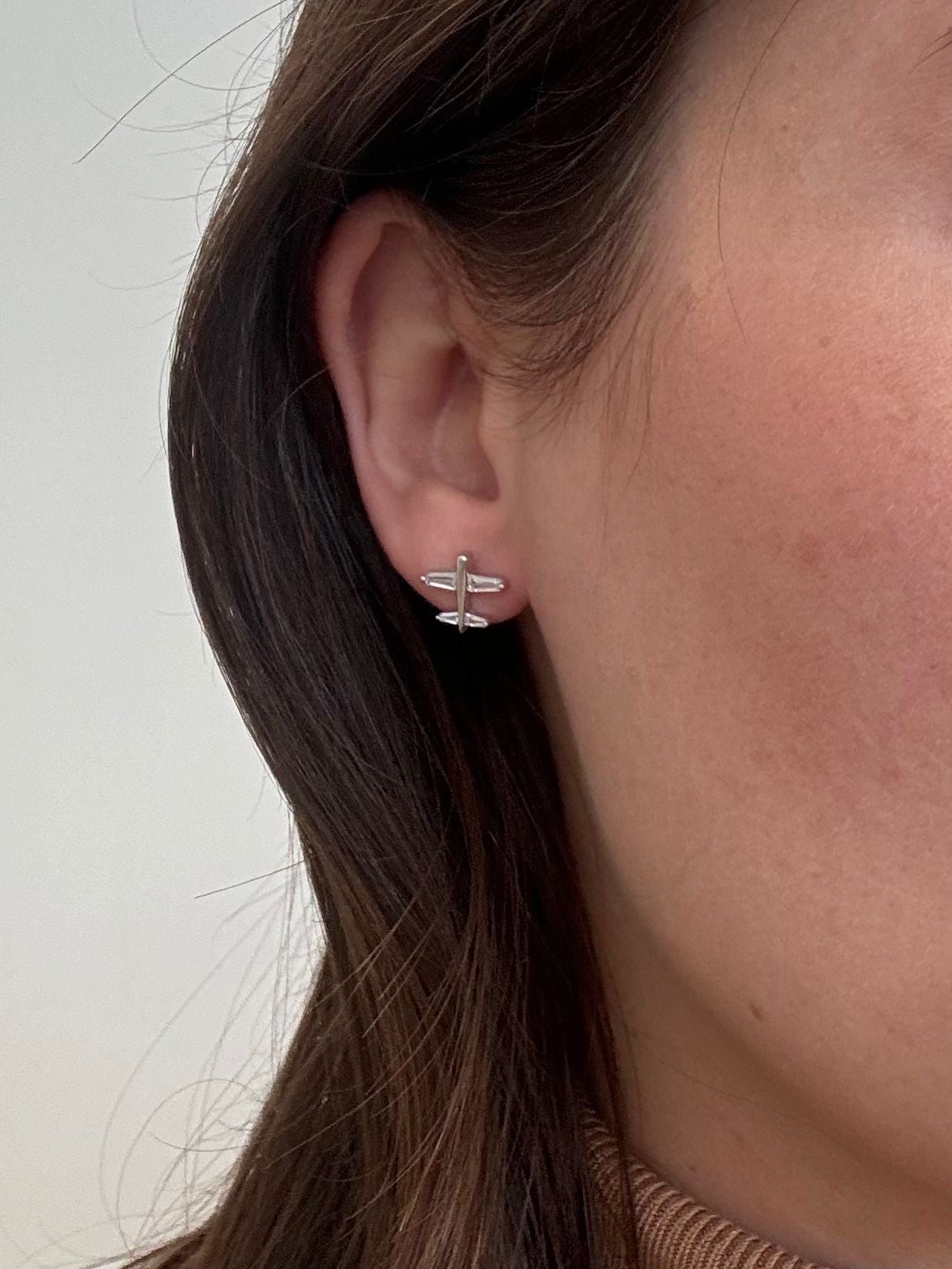 925 Sterling Silver Plane Stud Earrings with Cubic Zirconia