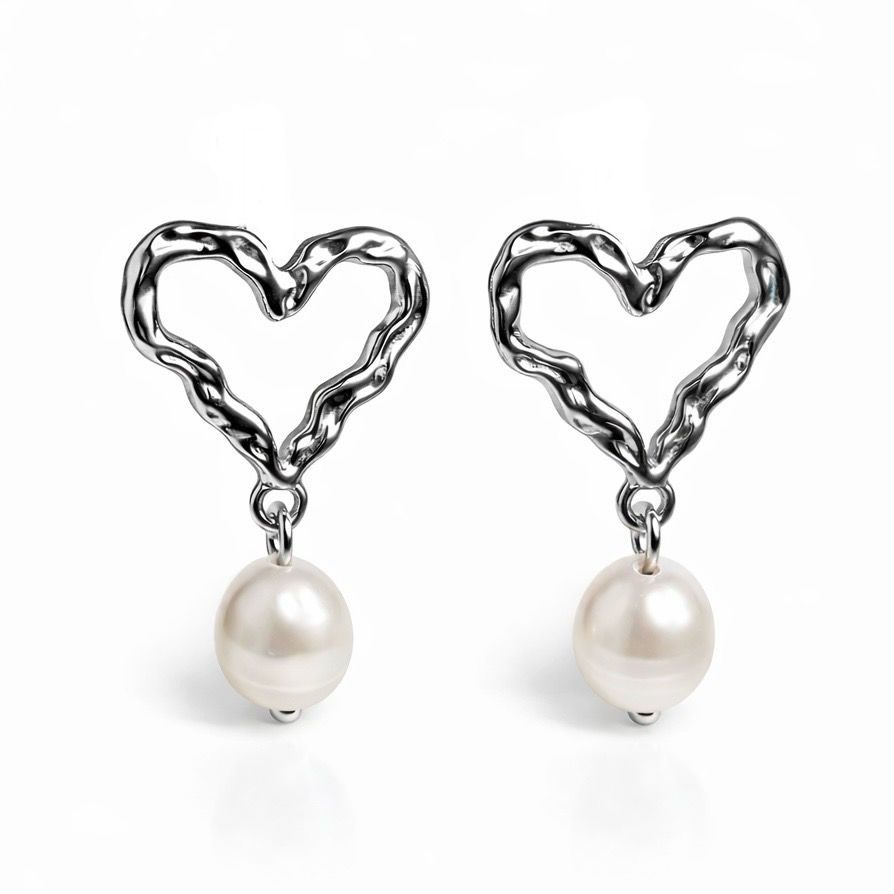 925 Sterling Silver Heart Drop Earrings with Pearls