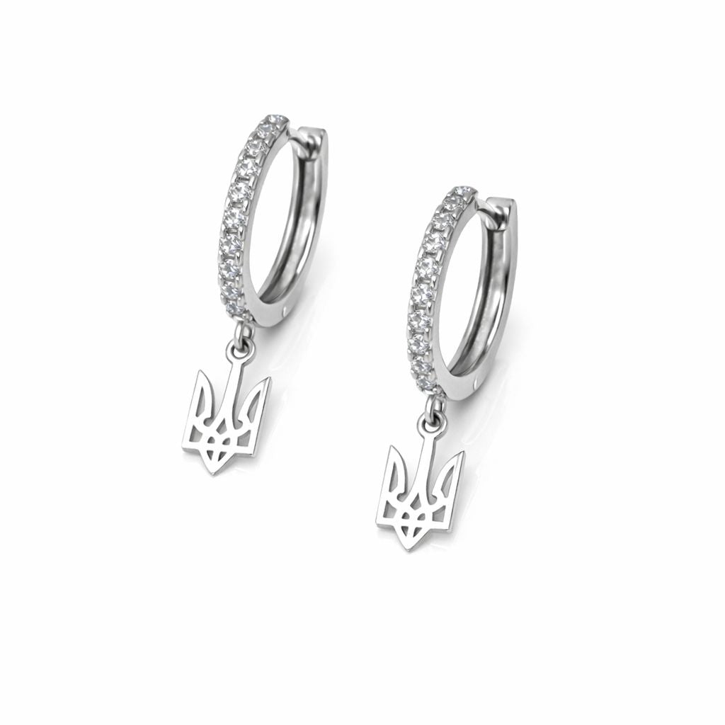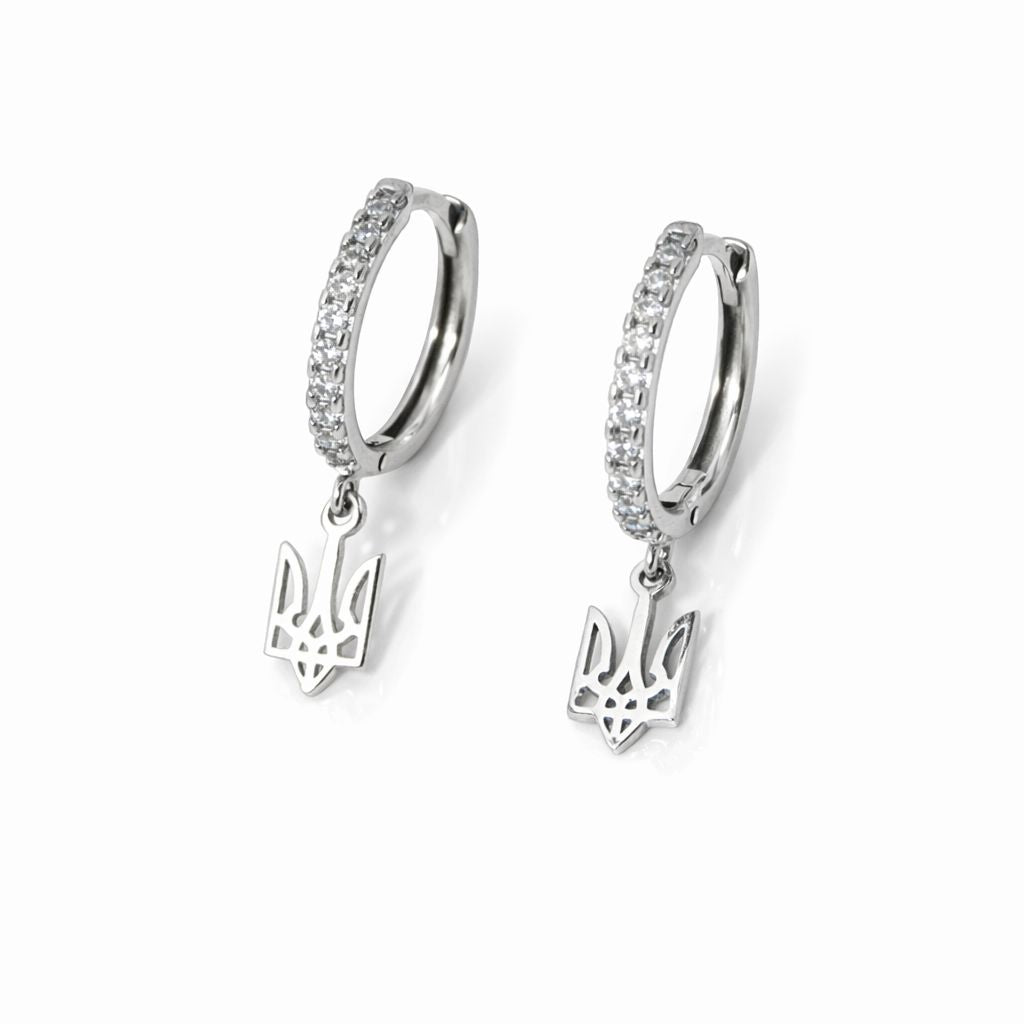 925 Sterling Silver Drop Earrings with Tryzub and Cubic Zirconia