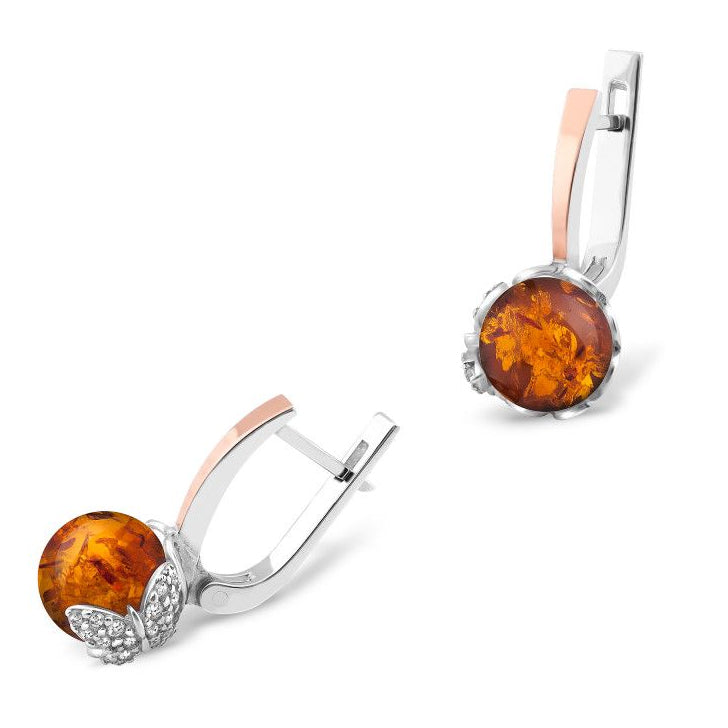 925 Sterling Silver Drop Earrings with Amber, Cubic Zirconia and Rose Gold Overlays