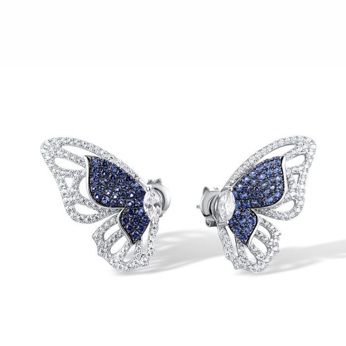 925 Sterling Silver Butterfly Stud Earrings with Cubic Zirconia