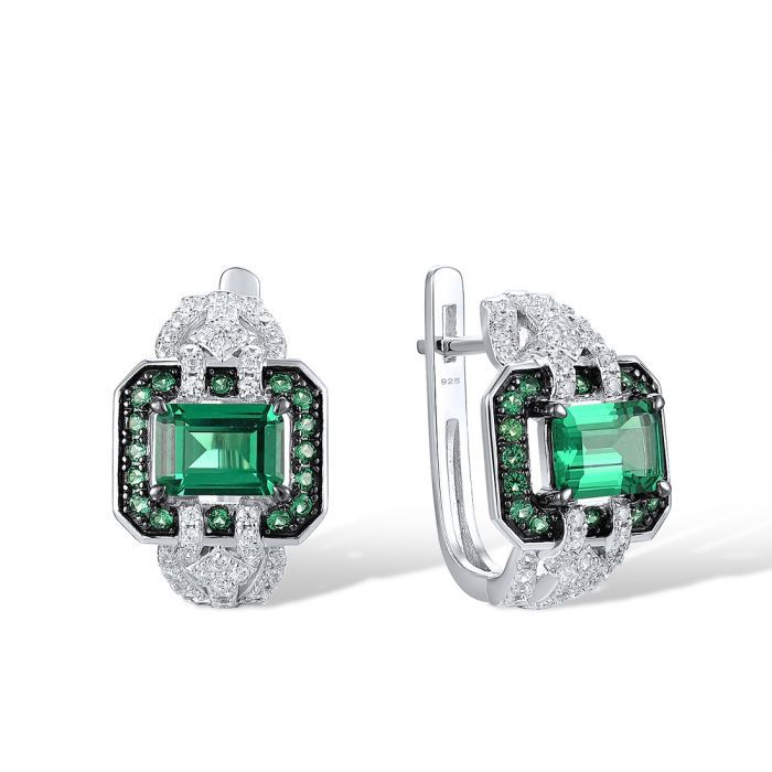 925 Sterling Silver Stud Earrings with Enamel,Green Spinel,Created Ruby,Cubic Zirconia
