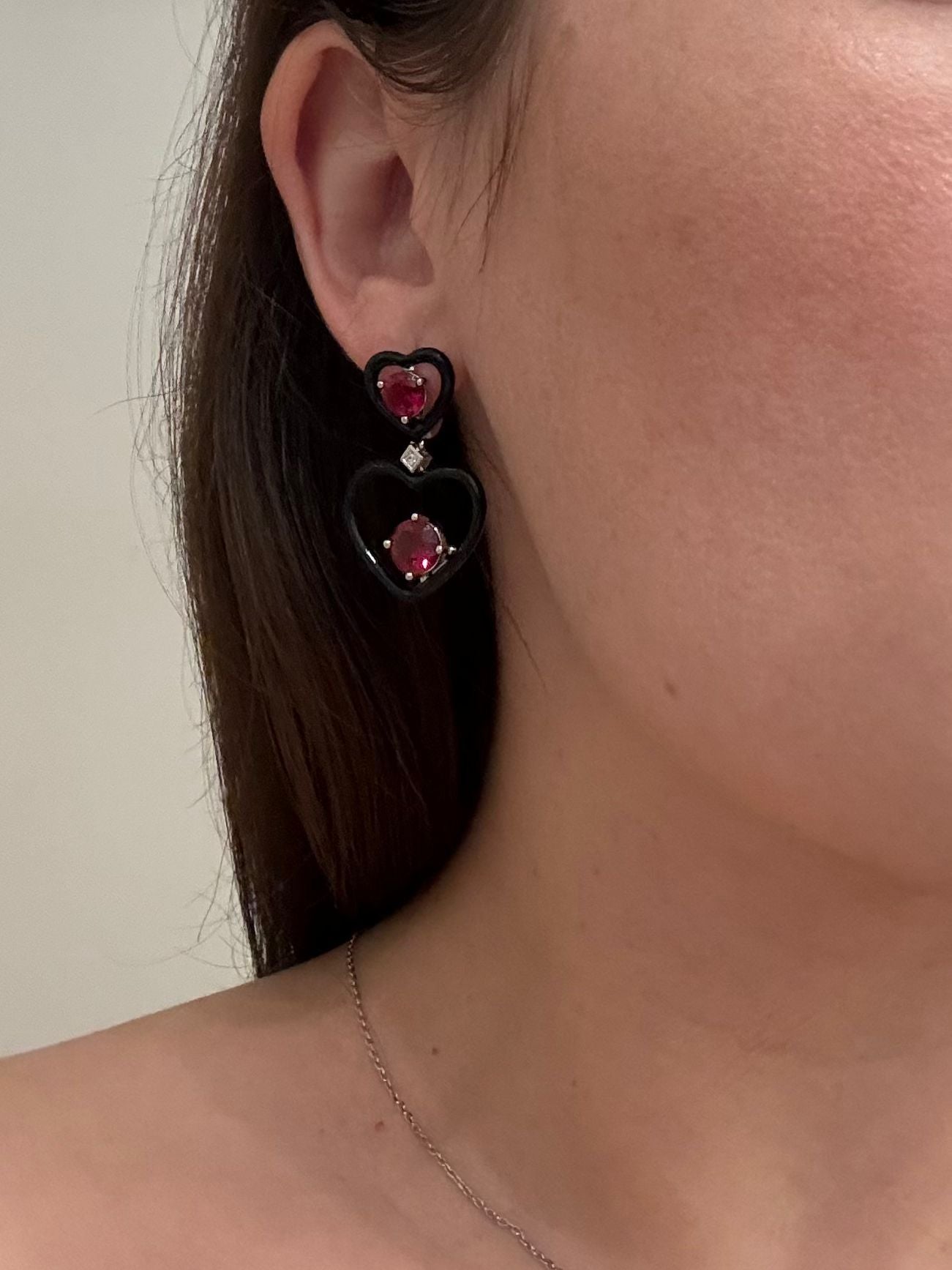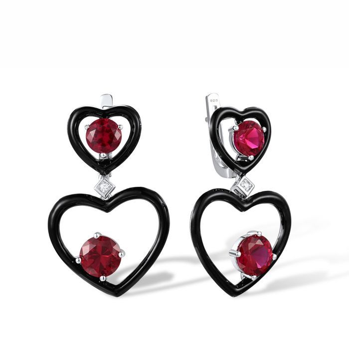 925 Sterling Silver Drop Earrings with Enamel,Red Nano Crystal, Cubic Zirconia
