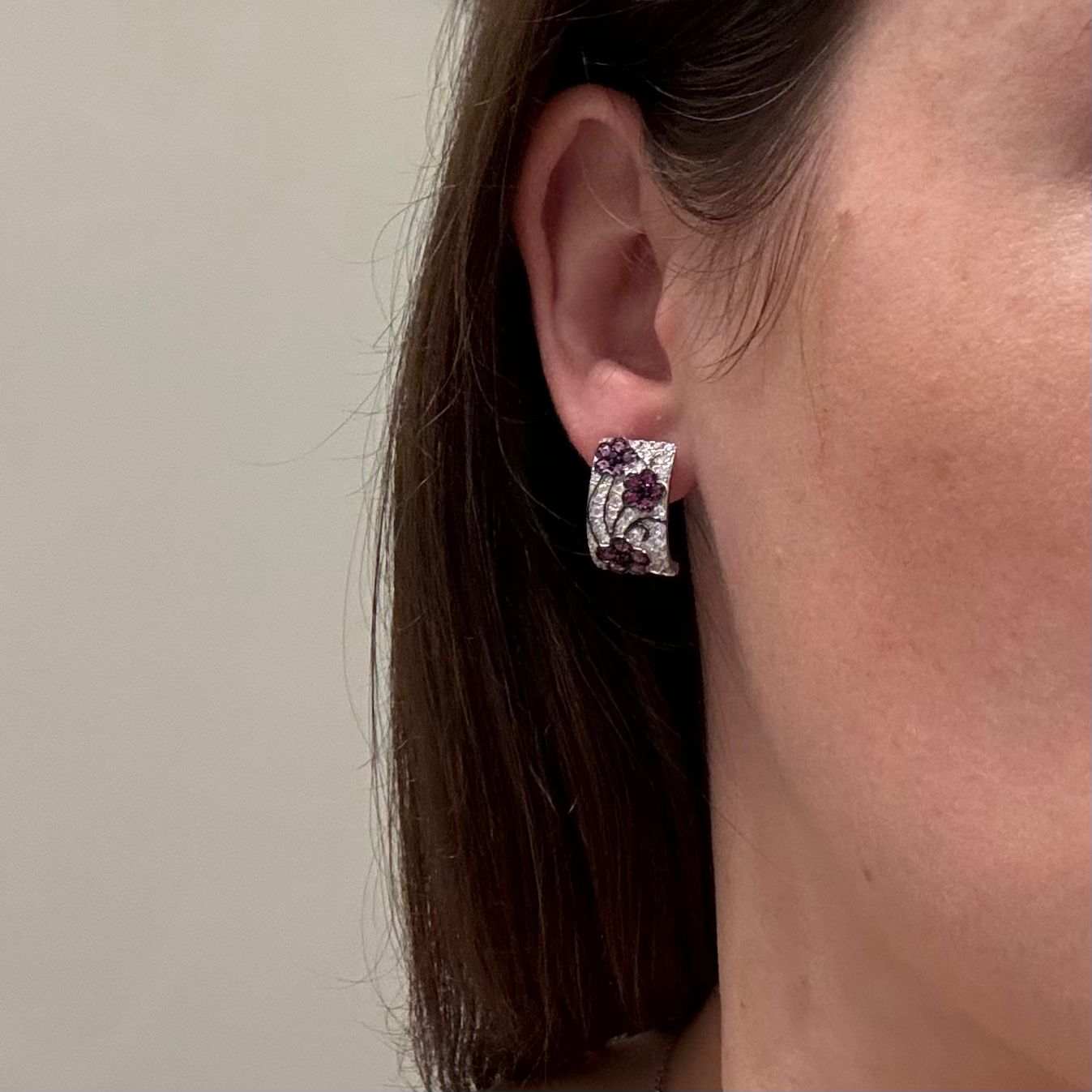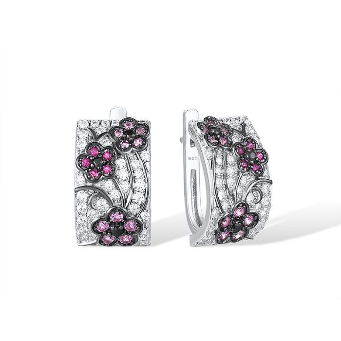 925 Sterling Silver Flower Lever Back Earrings Black Spinel,Created Pink Sapphire,Created Ruby, Cubic Zirconia