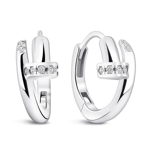 925 Sterling Silver Nail Hoop Earrings with Cubic Zirconia