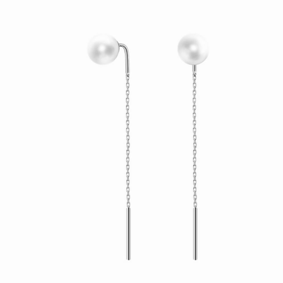925 Sterling Silver Thread Earrings with Pearls