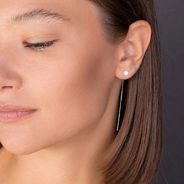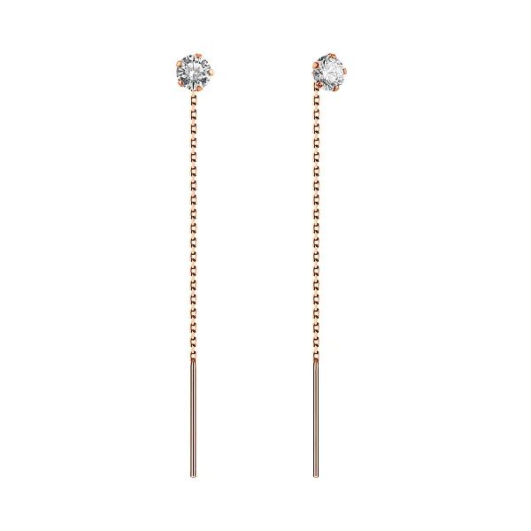 Thread Earrings in 14K/585 Rose Gold with Cubic Zirconia