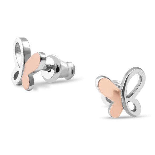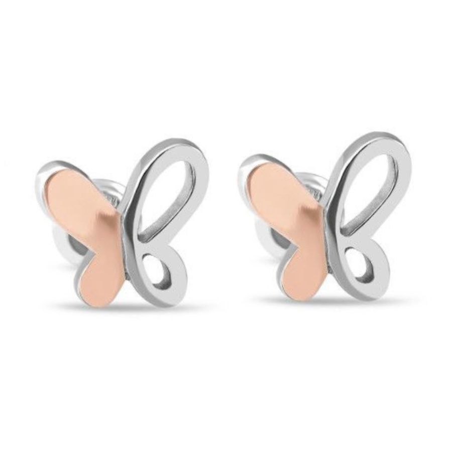 925 Sterling Silver Butterfly Stud Earrings 10K/375 Rose Gold Overlays