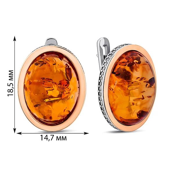 925 Sterling Silver Lever Back Earrings with Amber, Cubic Zirconia and 10K/375 Rose Gold Overlays