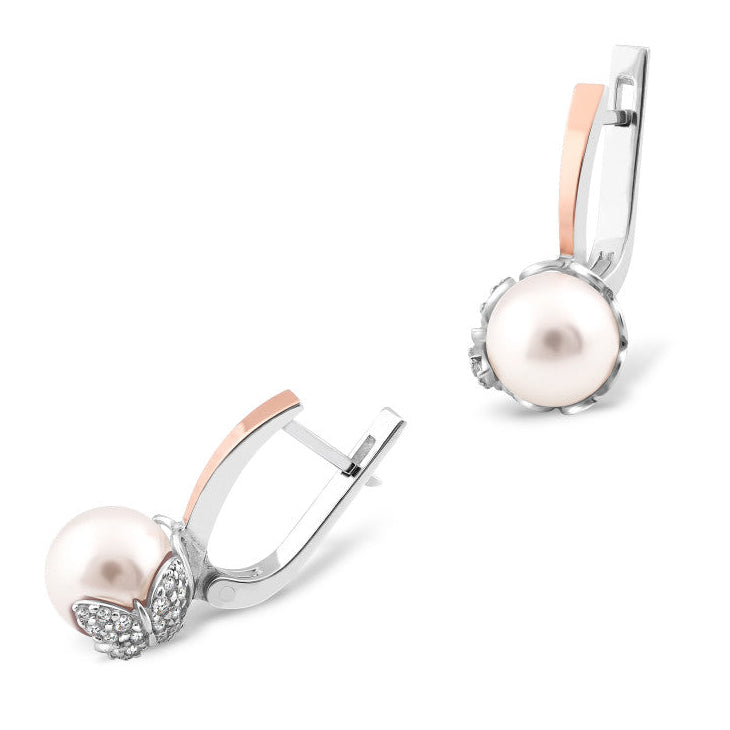 925 Sterling Silver Earrings with Pearls,Cubic Zirconia and Rose Gold Overlays