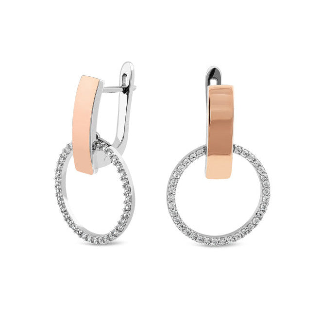 925 Sterling Silver Drop Earrings Circle with Cubic Zirconia and 10K/375 Rose Gold Overlays