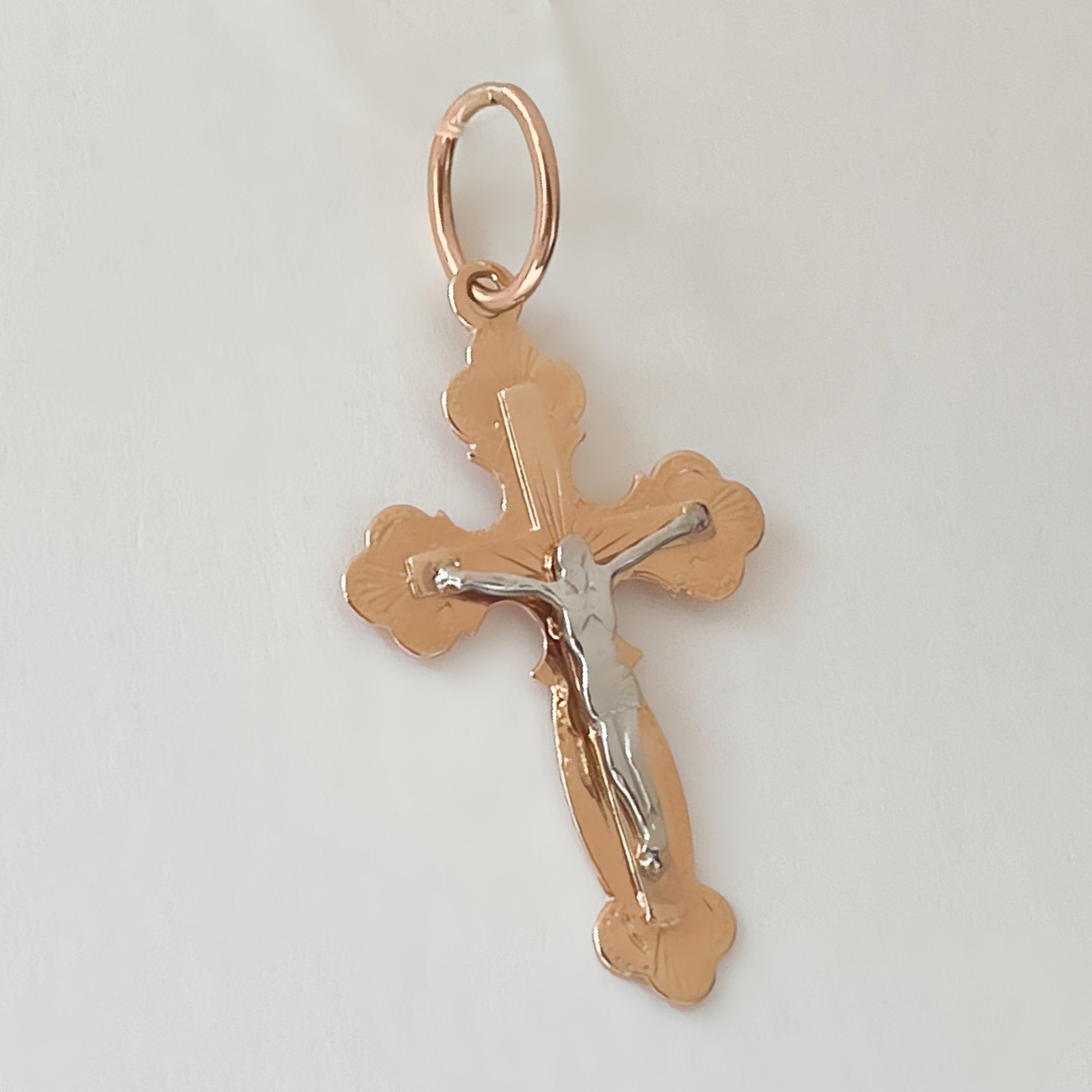 This 14K/585 Rose Gold Cross features a White Gold Jesus for timeless sophistication. The elegant design will make it an eye-catching symbol of faith and style. The beautiful rose gold finish will make it the perfect accessory for any outfit.