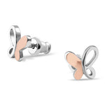 925 Sterling Silver Butterfly Stud Earrings 10K/375 Rose Gold Overlays
