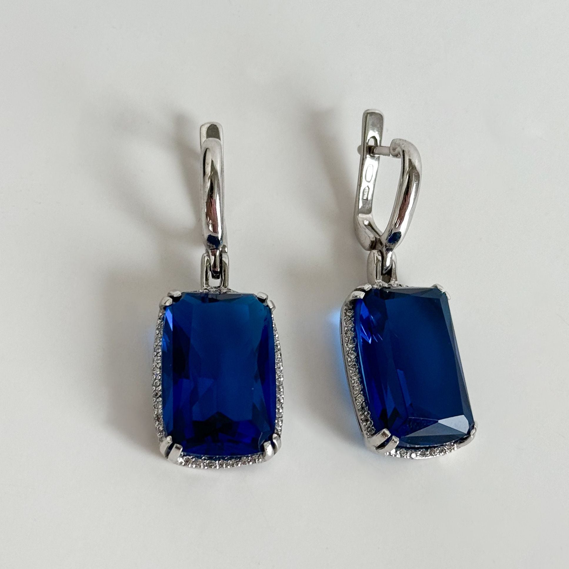 925 Sterling Silver Drop Earrings with Blue Quartz and Clear Cubic Zirconia