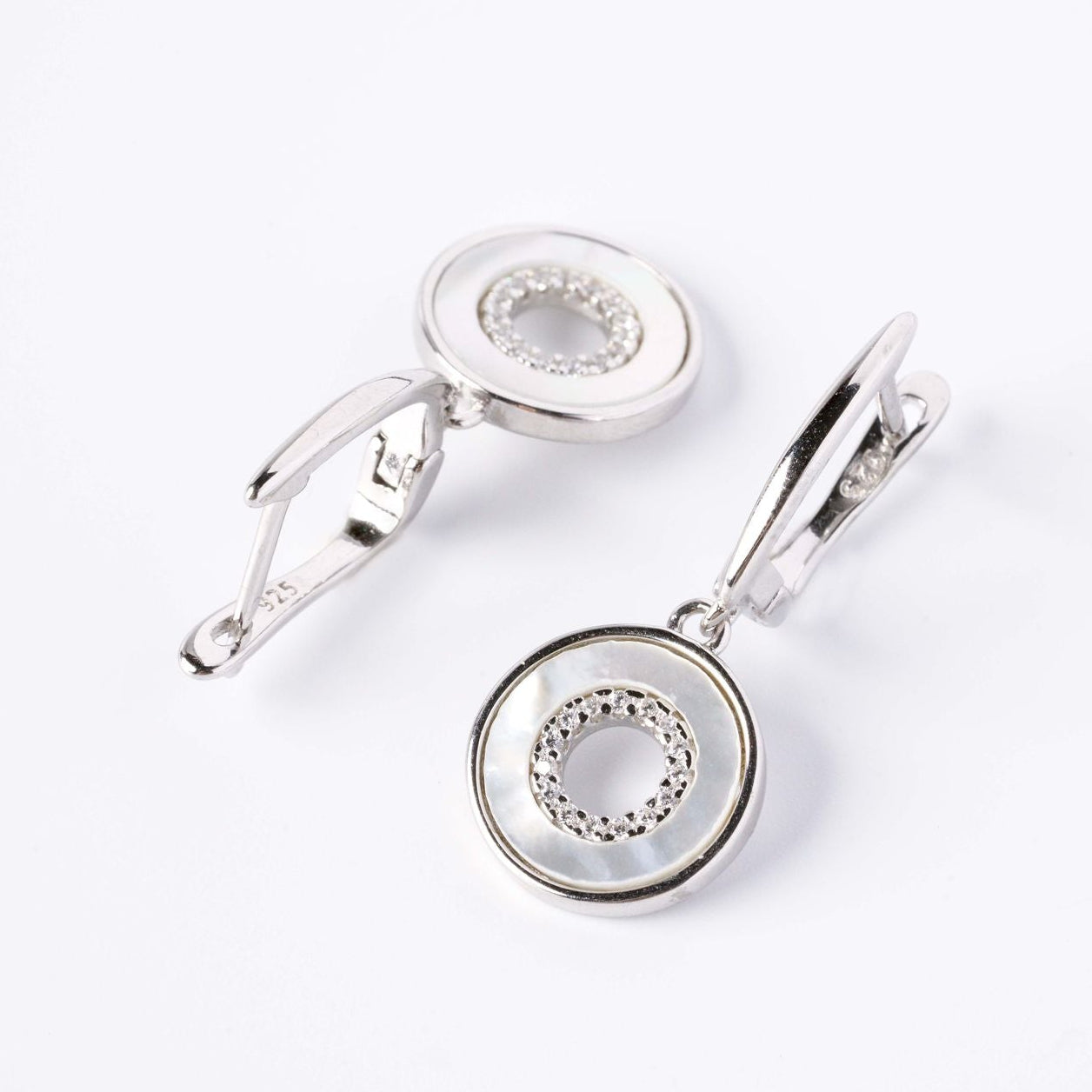 925 Sterling Silver Drop Earrings with Mother of Pearl and Cubic Zirconia