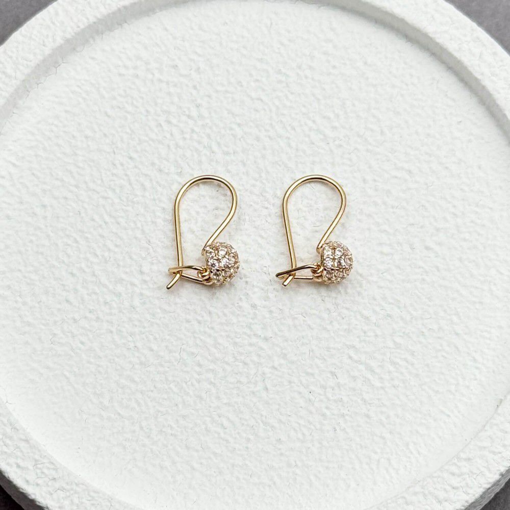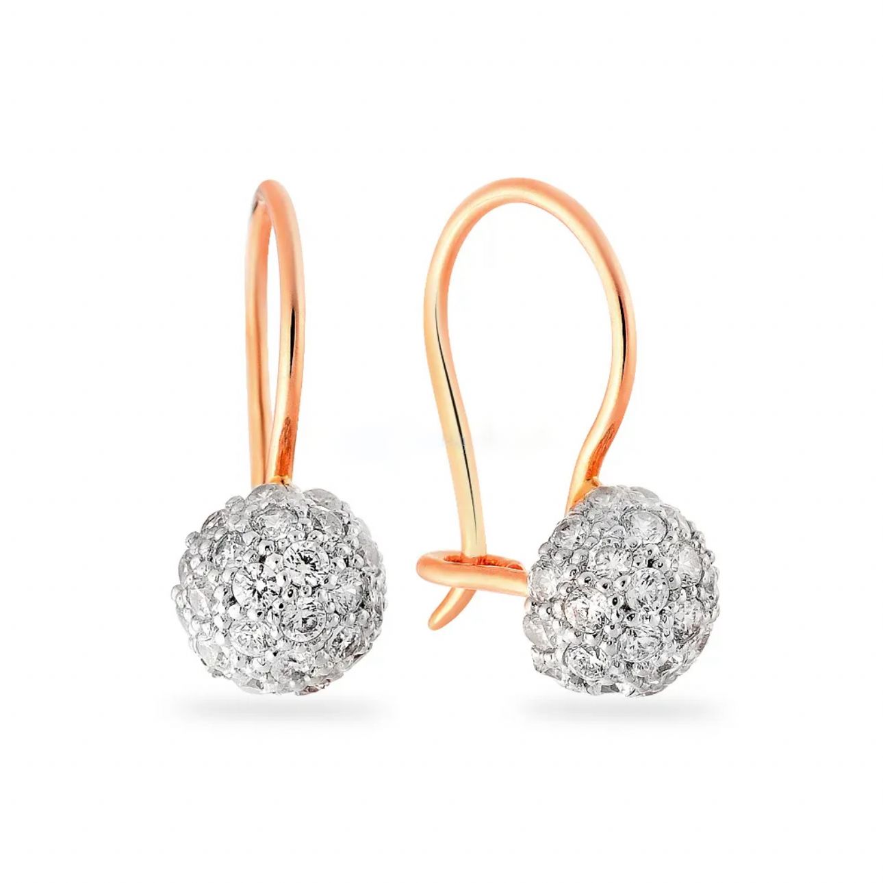 French Back Earrings in 14K/585 Rose Gold Ball with Cubic Zirconia
