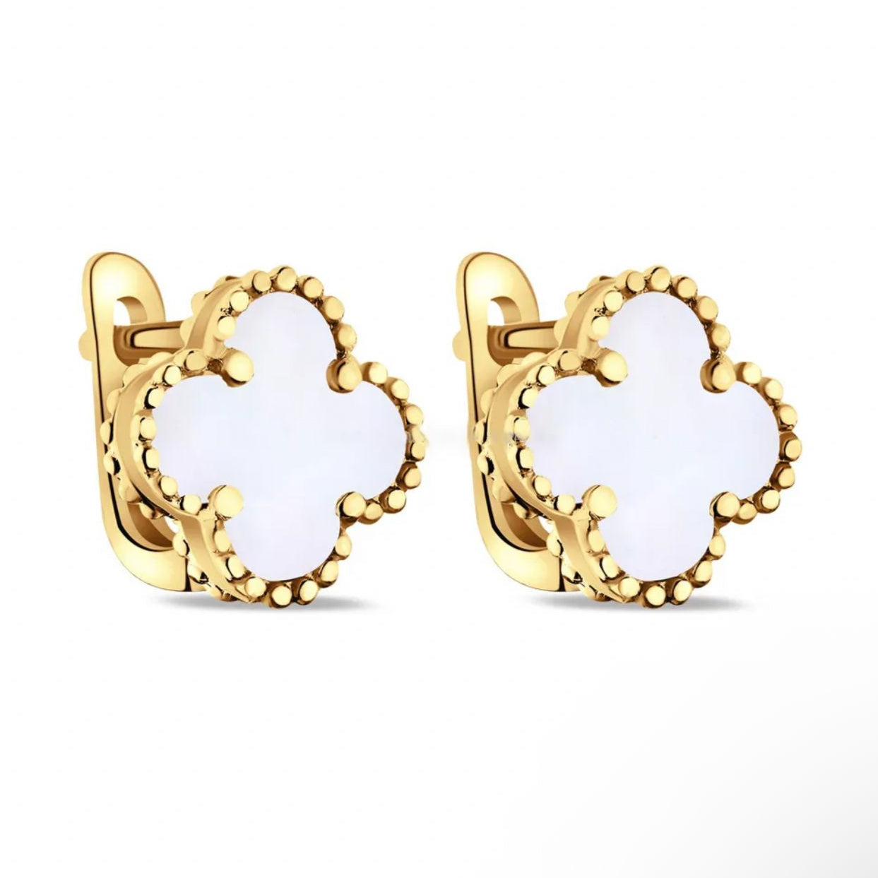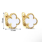 Yellow Gold Plated 925 Sterling Silver Lever Back Clover Earrings with Mother of Pearl