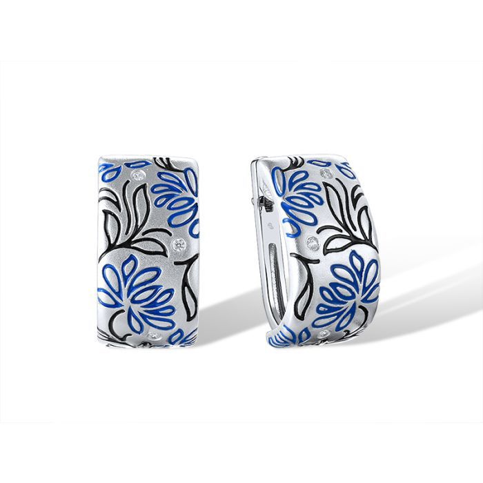 Matte 925 Sterling Silver Lever Back Earrings with Enamel and Cubic Zirconia