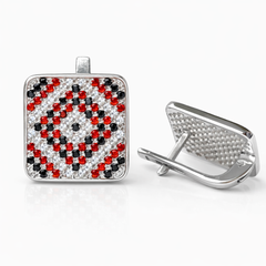 This beautiful 925 sterling silver ring features a distinct vyshyvanka ornament set with black, red and white cubic zirconia stones. The deep colours and intricate detailing of the setting provide an eye catching accent to any outfit and make it the perfect statement piece. The quality craftsmanship and sterling silver guarantee a lasting and durable piece of jewelry.
