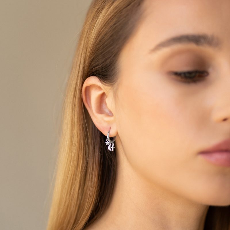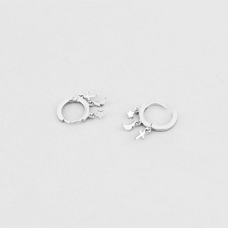 These hoop earrings with a drop star, moon, and cross are the perfect addition to any outfit. Get ready to turn heads with these cute and playful earrings that showcase your unique personality.