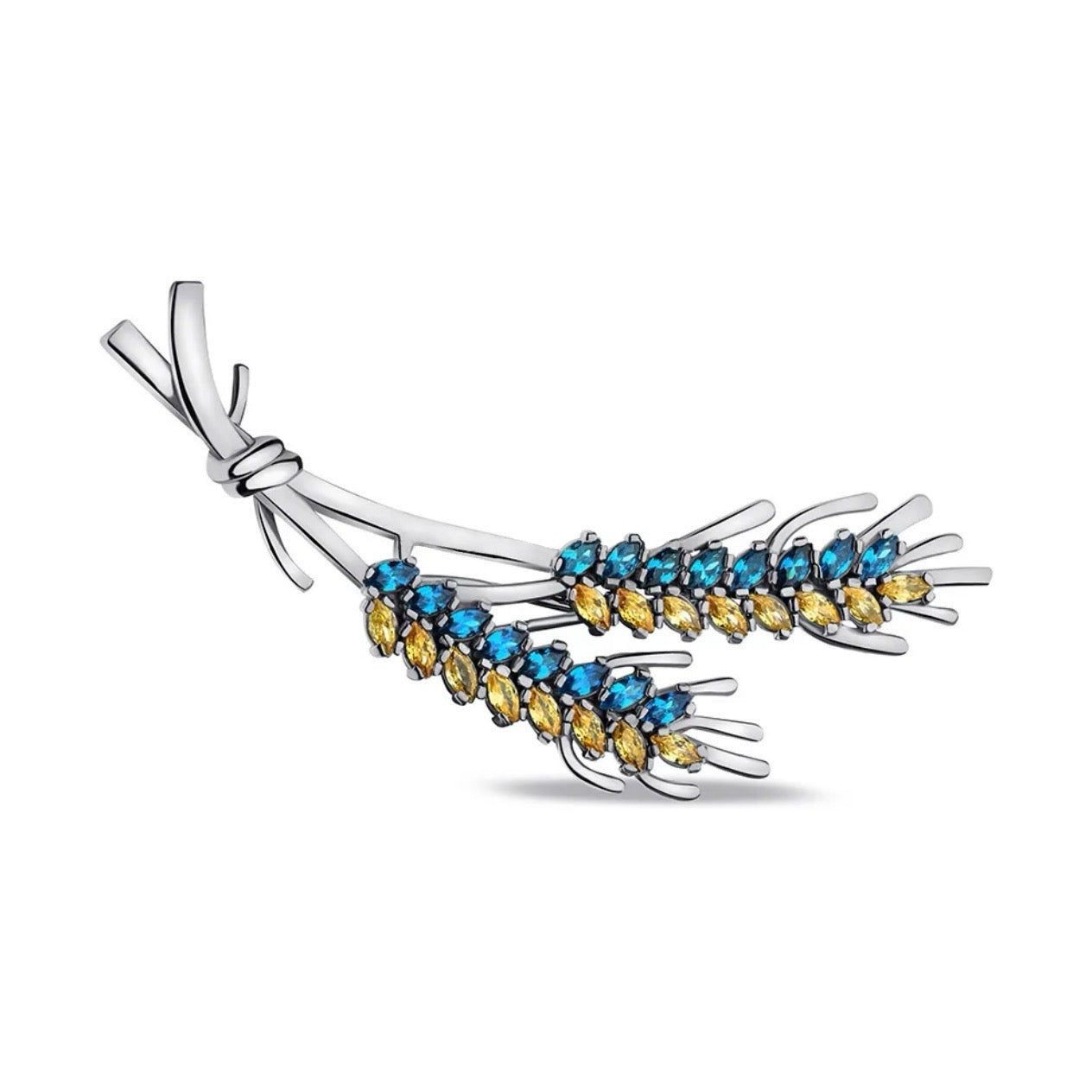 925 Sterling Silver Jewellery Pin Wheat with Blue and Yellow Cubic Zirconia