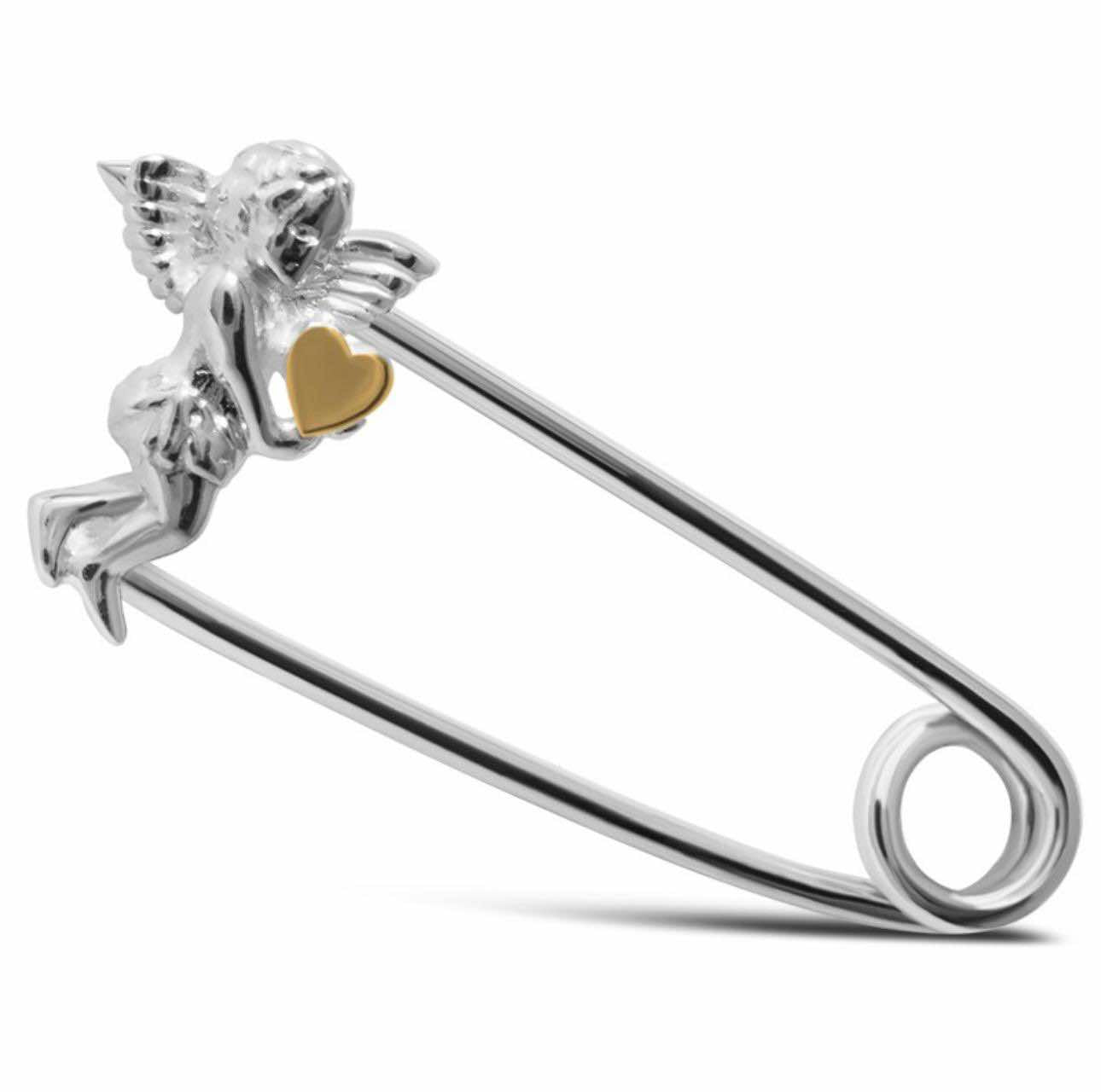 925 Sterling Silver Pin with Cubic Zirconia Angel with Rose Gold Plated Heart
