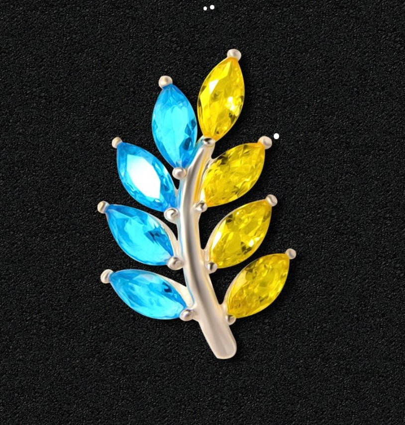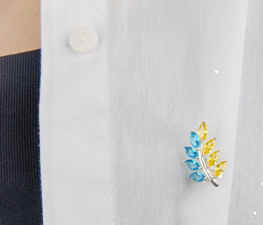 925 Sterling Silver Jewellery Pin Wheat with Blue and Yellow Cubic Zirconia