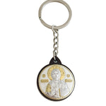 Two Sided Keychain Jesus/Bazyntine Cross with Gold Plated Details