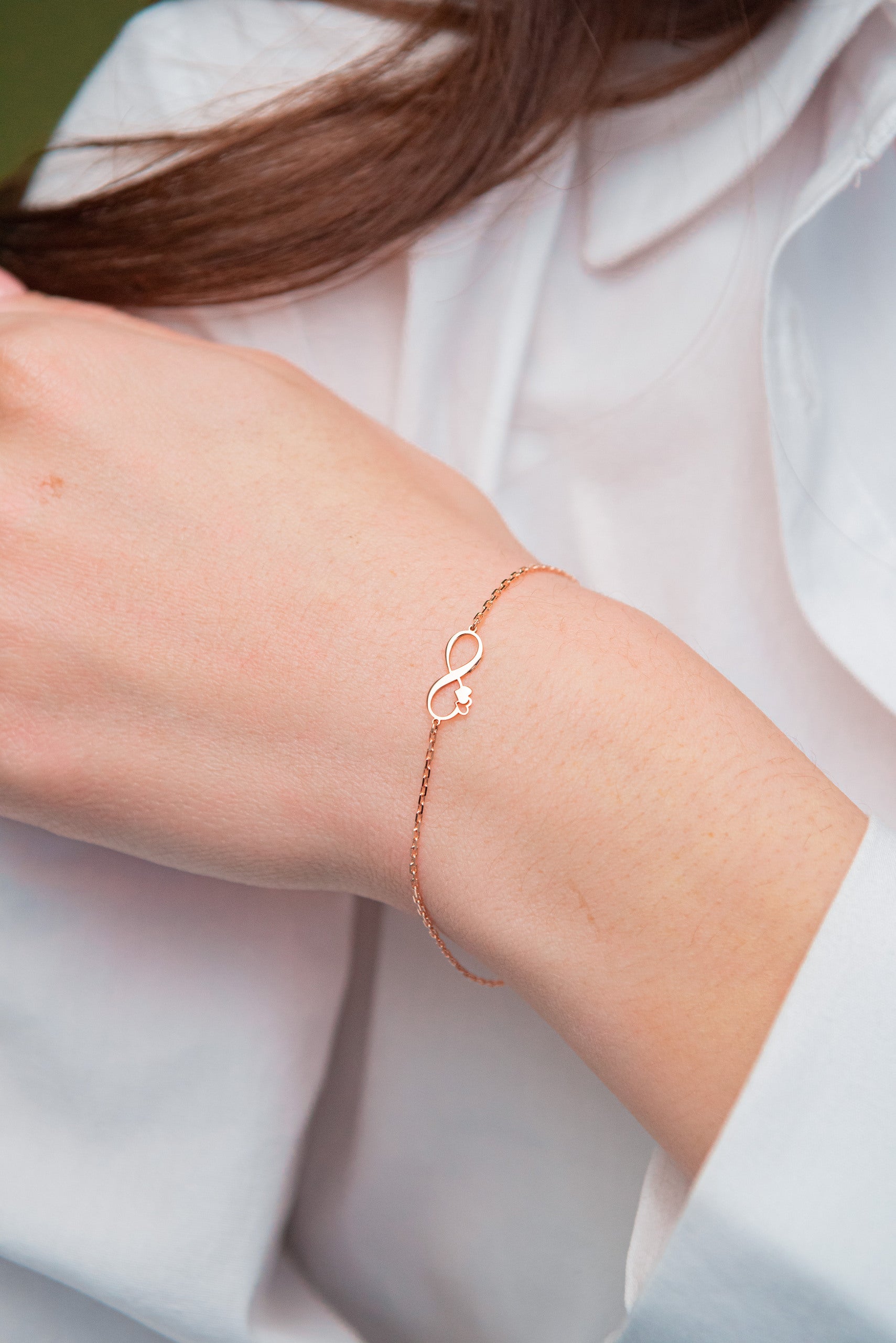 This bracelet from Bracelet in 14K/585 Rose Gold Infinity is the perfect accessory for any occasion. Crafted from solid 14K gold, the design includes an exquisite infinity motif, making it a beautiful and meaningful gift for the special person in your life.