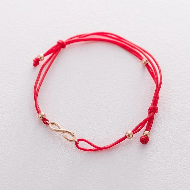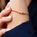 Red String Bracelet with Infinity in 14K/585 Rose Gold