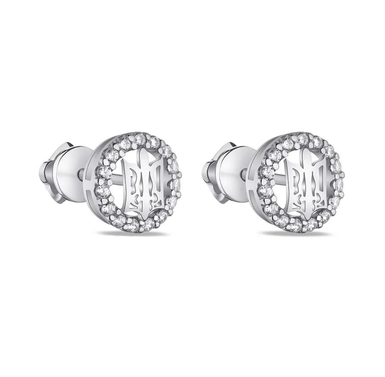 925 Sterling Silver Stud Earrings with Tryzub in Cubic Zirconia Halo