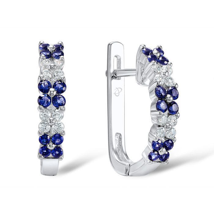 925 Sterling Silver Lever Back Earrings with Blue Nano Cubic Zirconia and White Cubic Zirconia