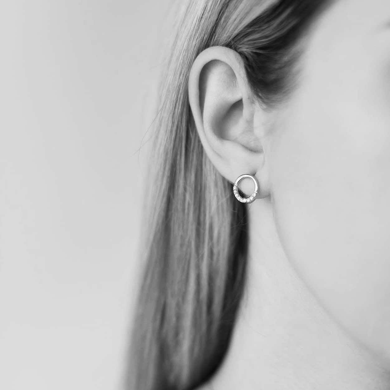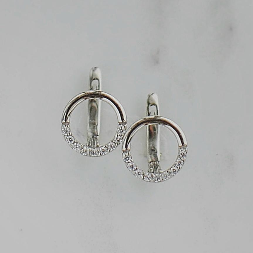 Lever Back Circle Earrings in 14K/585 White Gold with Cubic Zirconia