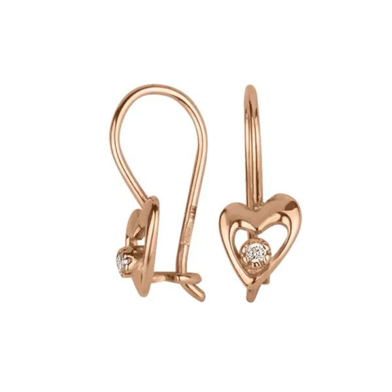 Lever Back Kids Earrings Hearts in 14K/585 Rose Gold with Enamel