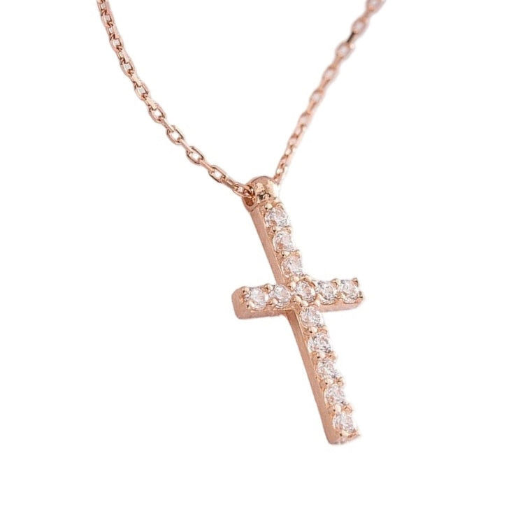 Cross Necklace in 14K/585 Rose Gold with Cubic Zirconia