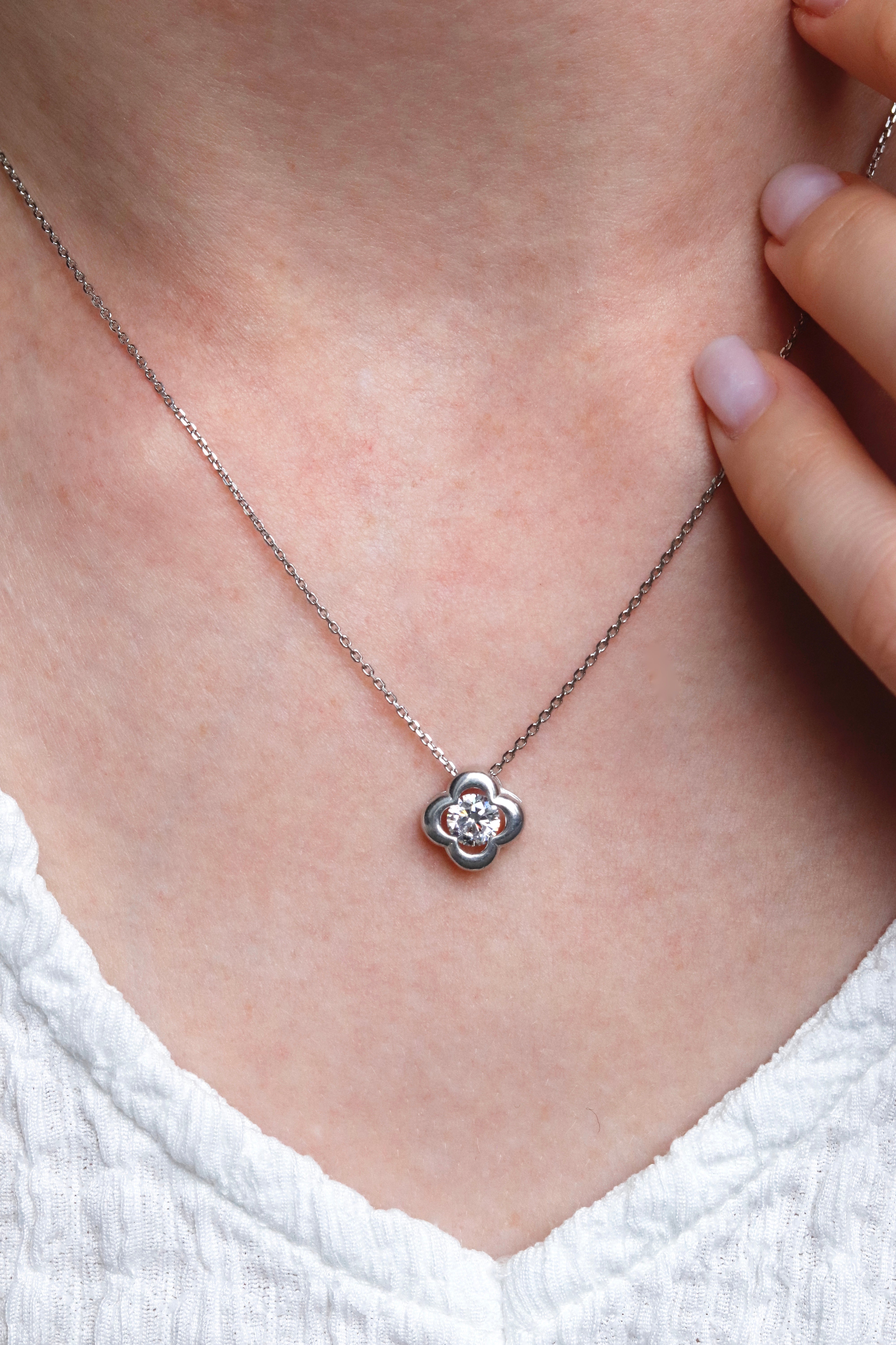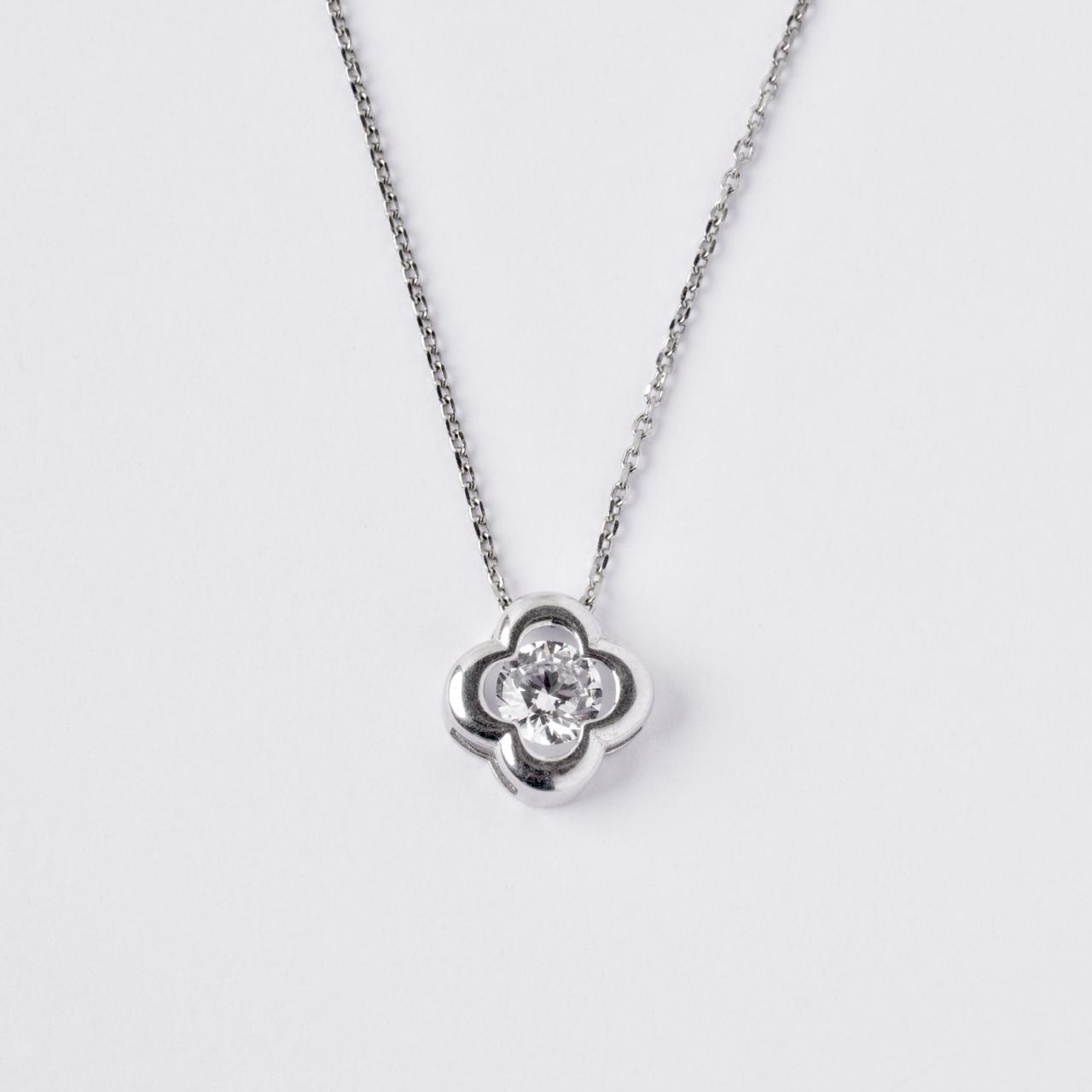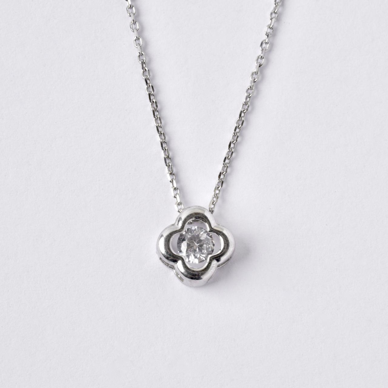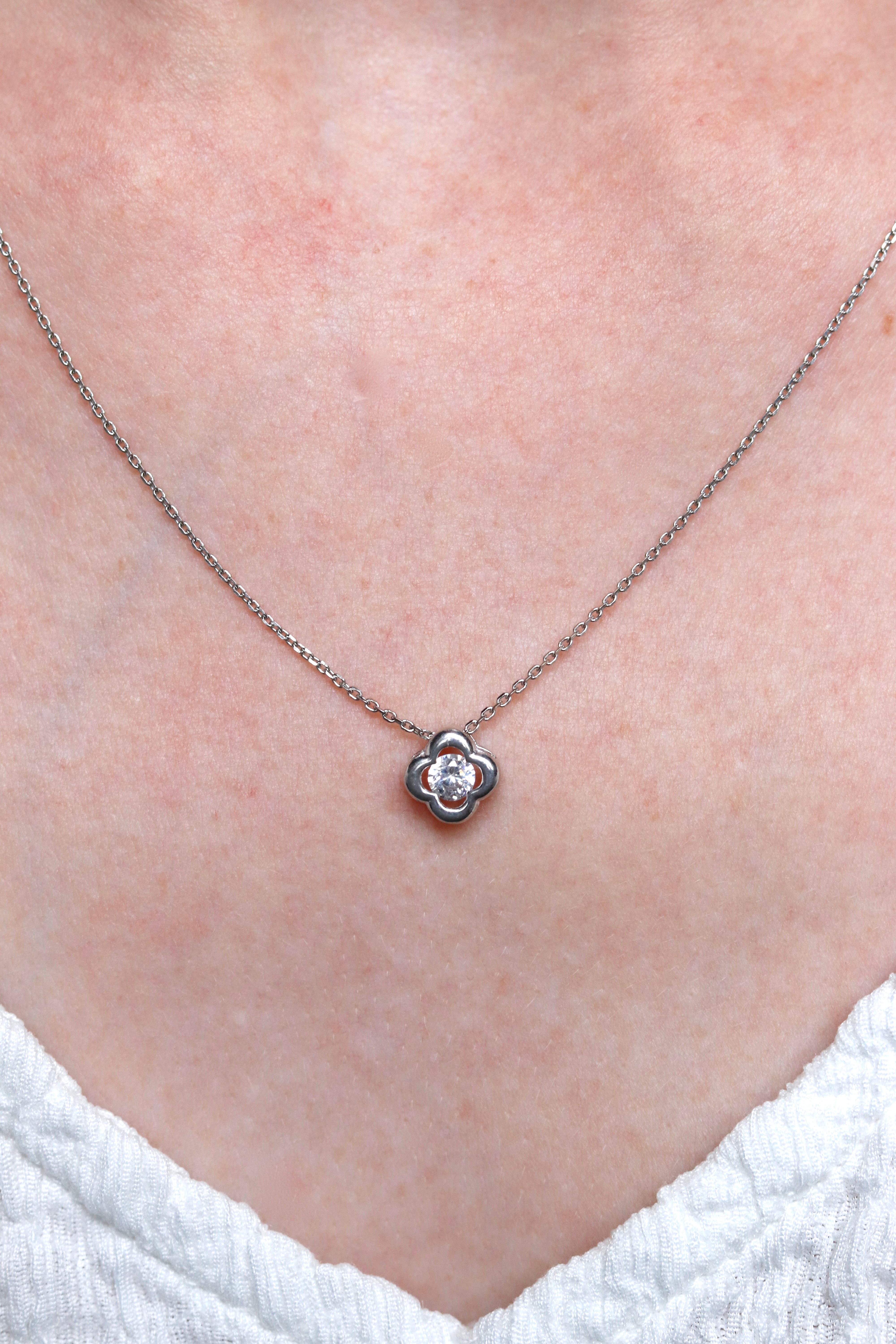 925 Sterling Silver Clover Necklace with Cubic Zirconia