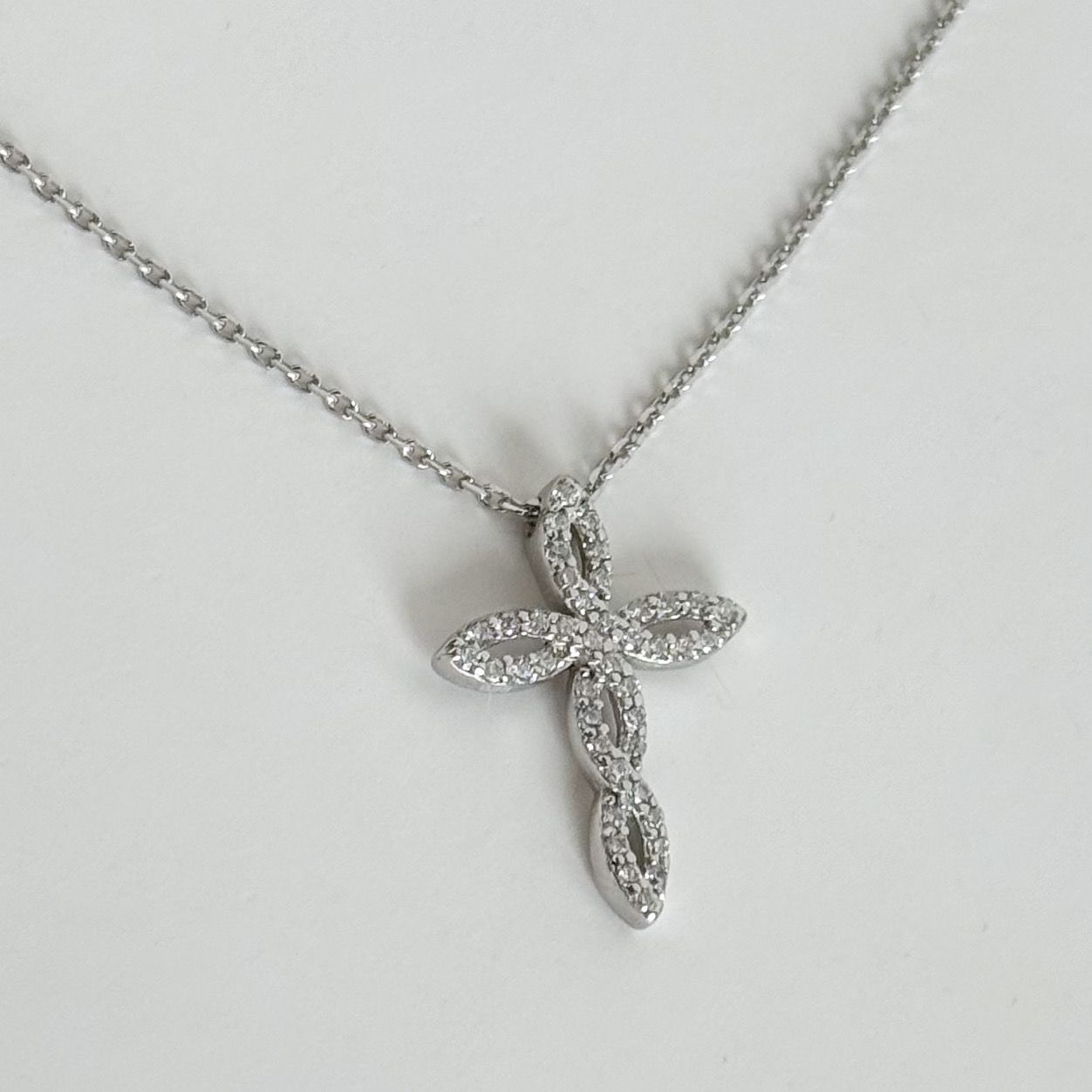 925 Sterling Silver Cross Necklace with Cubic Zirconia