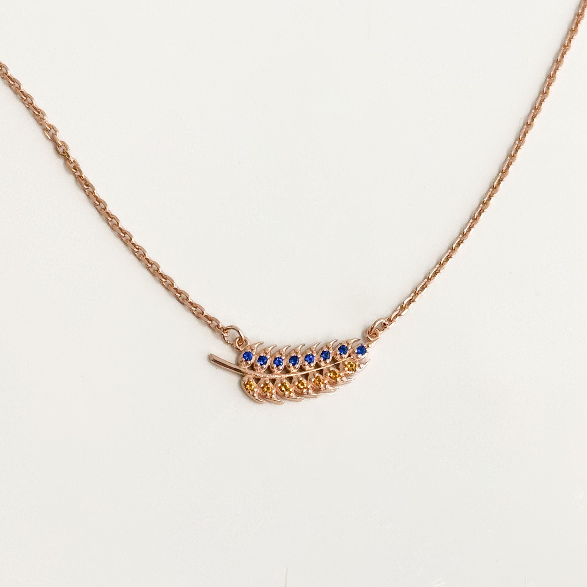 Rose Gold Plated 925 Sterling Silver Wheat Necklace with Blue and Yellow Cubic Zirconia
