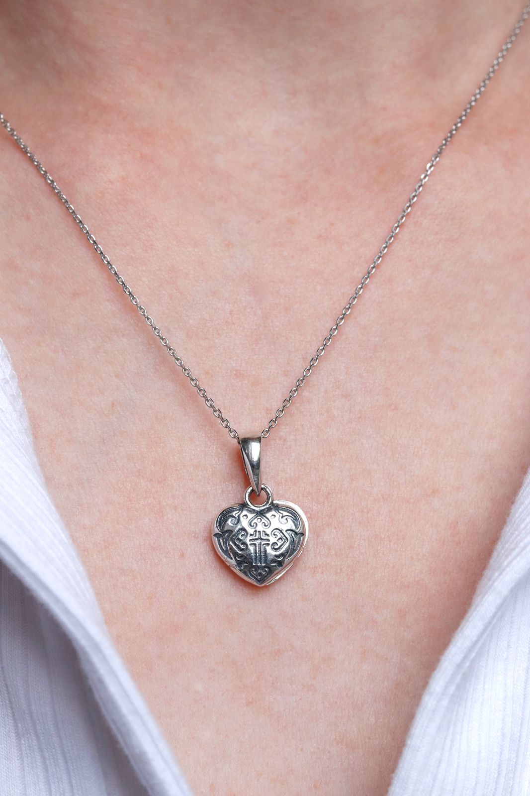 925 Sterling Silver Heart Pendant St. Mary and Jesus